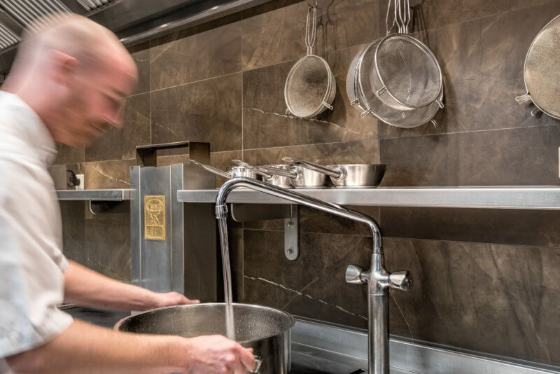 De keramische wandtegels in de keuken van het restaurant de Bistro Enter hebben wij mogen leveren. Deze wandtegels hebben een lichte marmerlook afgewerkt met een kleur die de combinatie heeft van brons en goud.