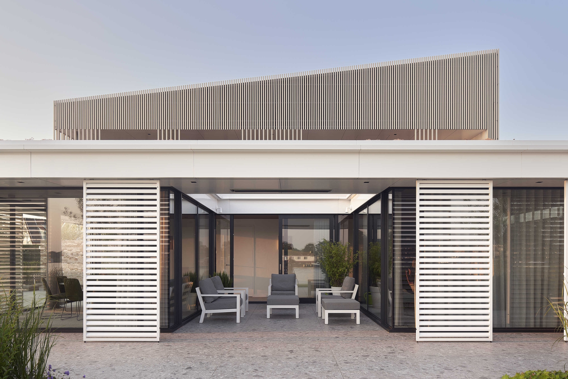 Voor dit woonhuis aan het water in Grou hebben wij de Ceppo di Gre keramische vloertegels mogen leveren die zowel binnen als buiten zijn gebruikt. Ceppo di Gre heeft een levendige look door verwerkte kiezels in de textuur. Door zowel binnen- als buiten dezelfde tegel te gebruiken wordt een prachtige, uniforme look gecreerd met overal de gemakken van hoogwaardig keramiek.